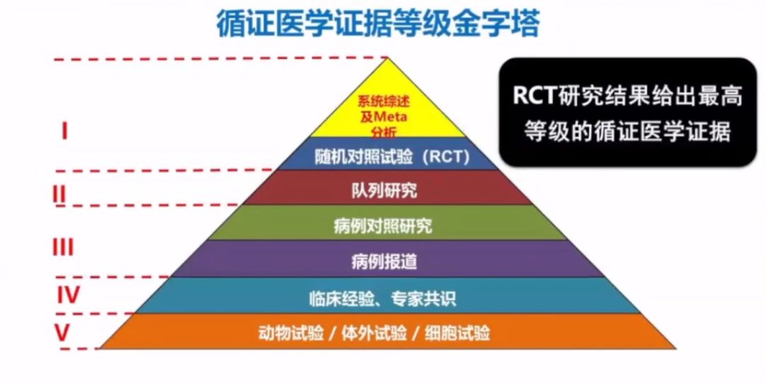 李衛(wèi)教授表示,根據(jù)循證醫(yī)學(xué)證據(jù)級別金字塔中最高等級的I級證據(jù)顯示,基于良好設(shè)計的隨機(jī)對照試驗(randomized controlled trial,RCT)最能夠評價器械的安全性和有效性。