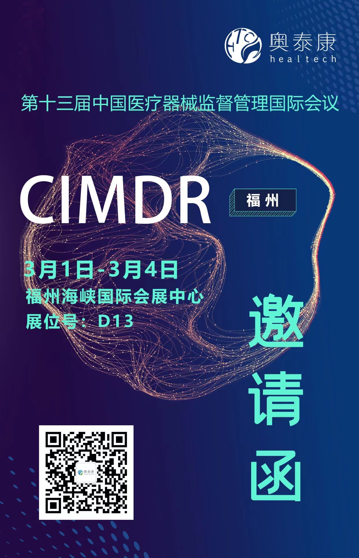 2023年3月1日-4日,第十三屆中國(guó)醫(yī)療器械監(jiān)督管理國(guó)際會(huì)議(CIMDR)將于福建省福州市海峽國(guó)際會(huì)展中心隆重舉行,奧泰康作為參展商和演講嘉賓參加會(huì)議,誠(chéng)摯邀請(qǐng)各位醫(yī)療同仁蒞臨展位。
