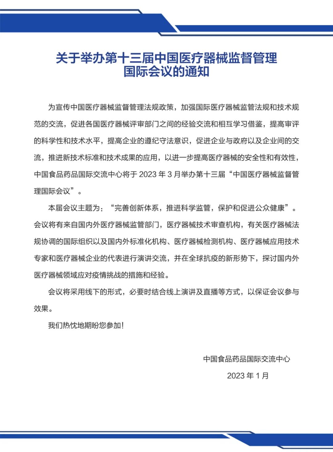 展會(huì)邀約 | 第十三屆中國(guó)醫(yī)療器械監(jiān)督管理國(guó)際會(huì)議(CIMDR)