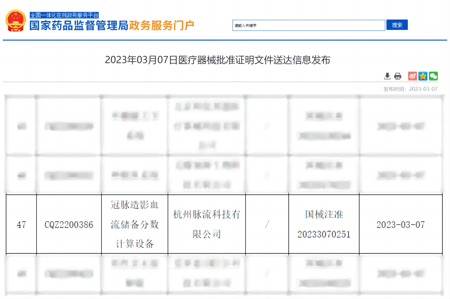 冠脈造影血流儲(chǔ)備分?jǐn)?shù)計(jì)算設(shè)備獲證,2023年第五張三類醫(yī)療器械注冊證??MA成果發(fā)布