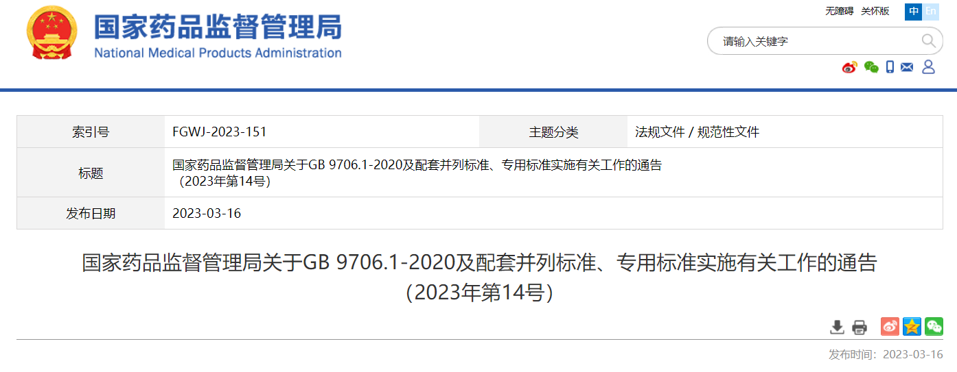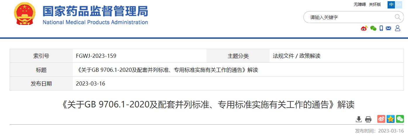 關(guān)于GB 9706.1-2020及配套并列標準、專用標準實施有關(guān)工作的通告(2023年第14號)及解讀