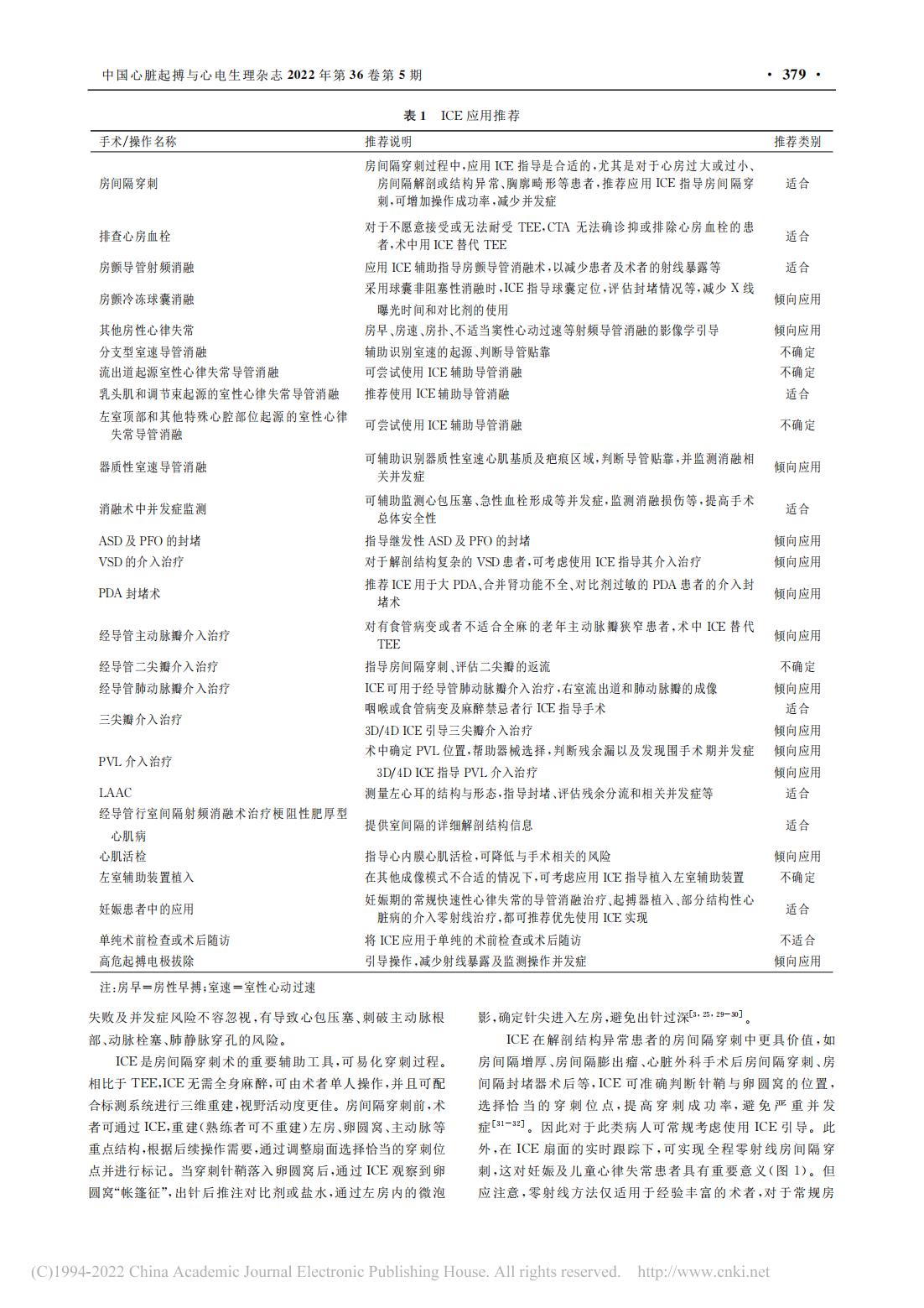 共識指出,ICE最初主要用于指導(dǎo)房間隔缺損(ASD)和卵圓孔未閉(PFO)的介入封堵,其成像效果與經(jīng)食管超聲心動圖(TEE)相當(dāng),ICE可對房間隔進(jìn)行成像,明確卵圓窩的位置和解剖結(jié)構(gòu),輔助術(shù)者選擇理想穿刺位置,提高房間隔穿刺的成功率和安全性,現(xiàn)已應(yīng)用于多種需要房間隔穿刺的介入手術(shù),如心房顫動射頻導(dǎo)管消融術(shù)、二尖瓣介入治療手術(shù)、左心耳封堵術(shù)(LAAC)等。并且,ICE可顯示食管、動脈和心耳等結(jié)構(gòu),從而有望避免相關(guān)并發(fā)癥的發(fā)生,增加術(shù)者信心,減少學(xué)習(xí)曲線,減少并發(fā)癥,增加成功率。