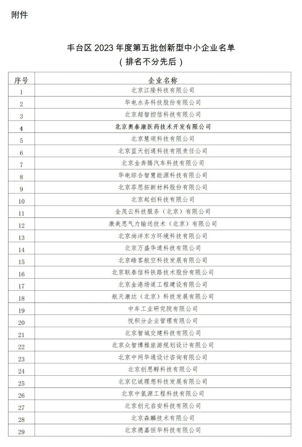 奧泰康入選豐臺區(qū)2023年度第五批創(chuàng)新型中小企業(yè)名單