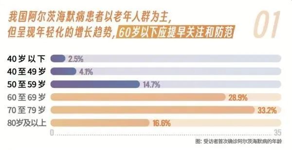 數(shù)據(jù)表明,首次確診阿爾茨海默病的人群中,年齡在60至79歲之間的人群占比最高,為62.1%。但值得注意的是,60歲以下的阿爾茨海默病發(fā)病患者在本次調(diào)查中占到了21.3%,相比國際上報道的早發(fā)型阿爾茨海默病占比5-10%更多,表明阿爾茨海默病在我國發(fā)病越來越年輕化。由于這類罹患人群尚處工作年齡,需要引起全社會的高度重視,強(qiáng)化全人群健康教育,加強(qiáng)疾病預(yù)防、早期篩查和診斷。