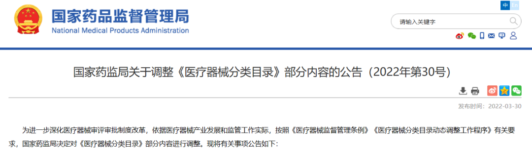 國(guó)家藥品監(jiān)督管理局發(fā)布關(guān)于調(diào)整《醫(yī)療器械分類目錄》部分內(nèi)容的公告,明確水光針(注射用透明質(zhì)酸鈉溶液)按照三類器械監(jiān)管。