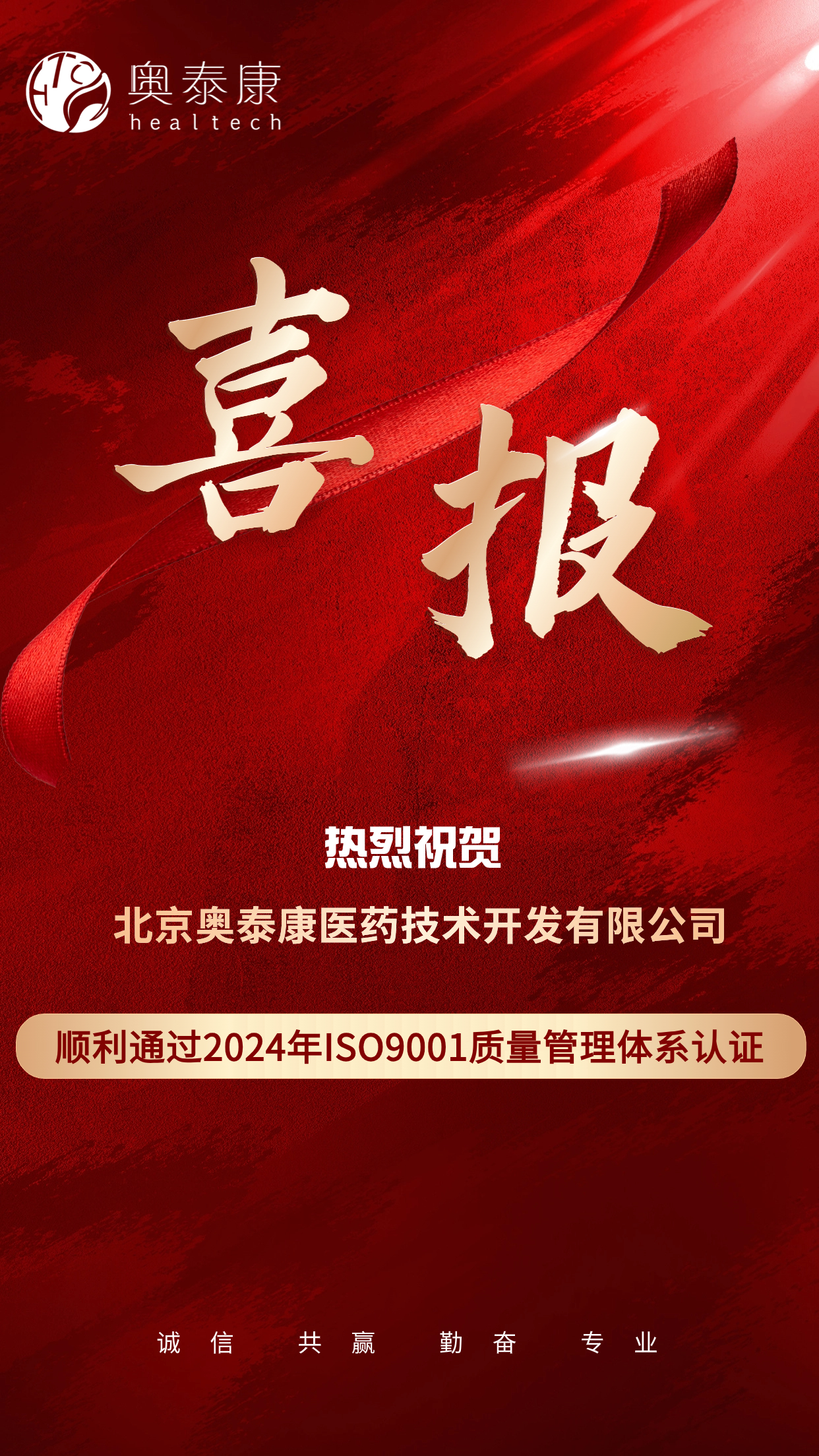 喜報 | 奧泰康通過ISO9001質(zhì)量管理體系年審認證