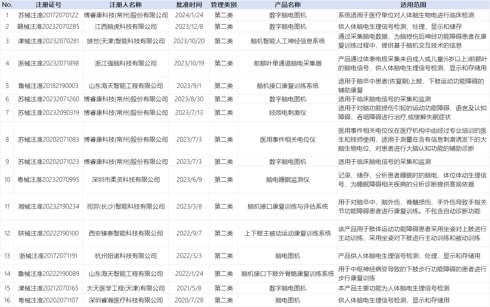 我國已獲批的二類腦機接口產(chǎn)品