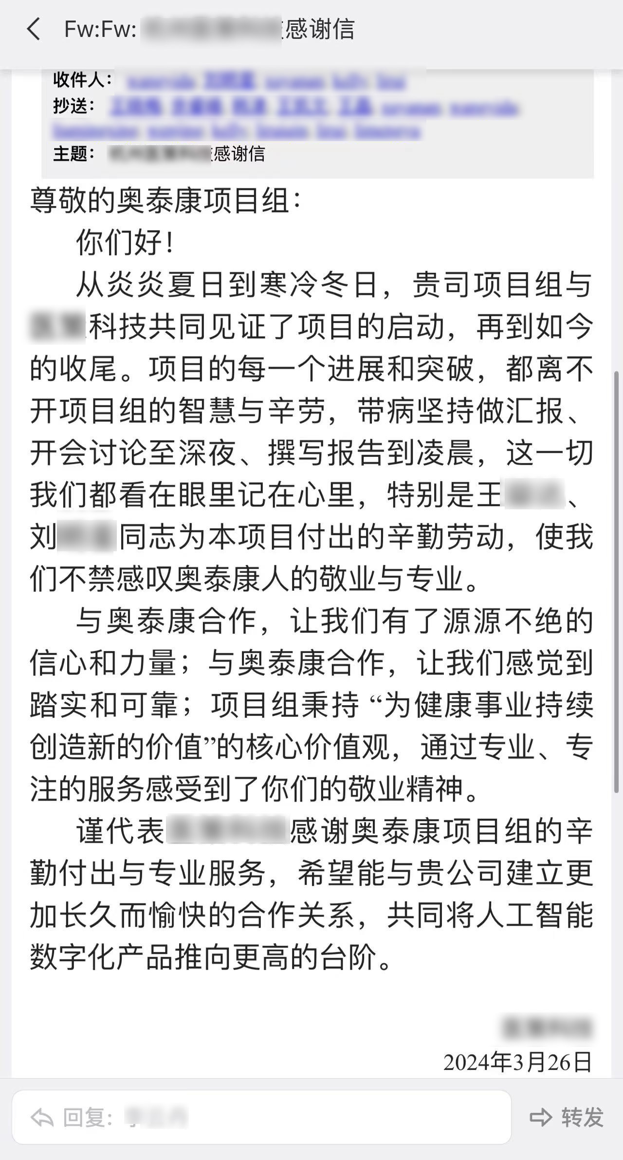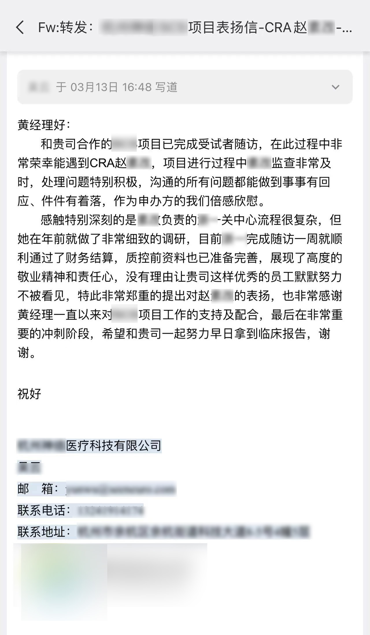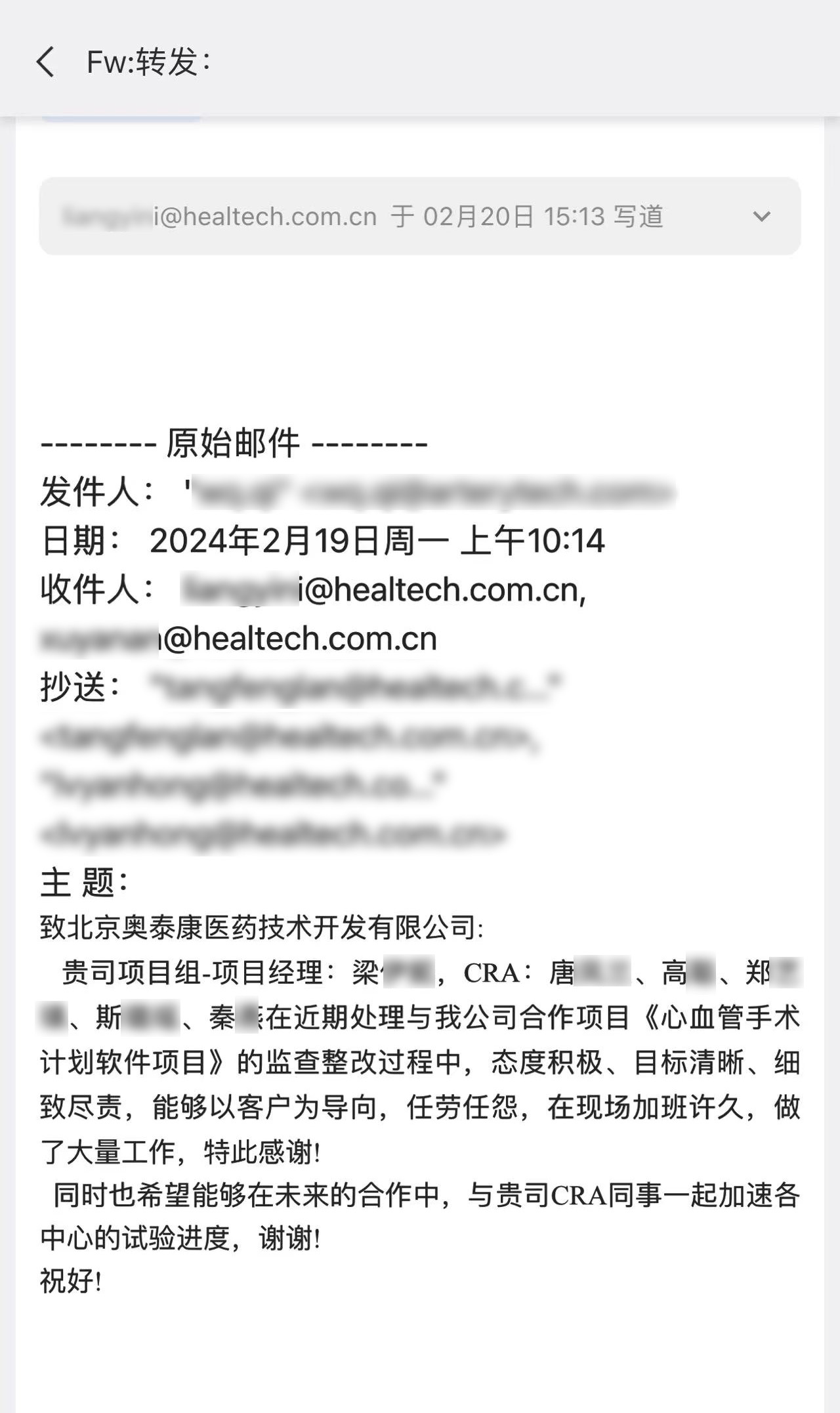 每一個(gè)項(xiàng)目的推進(jìn)離不開(kāi)臨床團(tuán)隊(duì)的共同努力,一年過(guò)半,奧泰康陸續(xù)收到了多封來(lái)自合作伙伴的感謝信和表?yè)P(yáng)信,信中對(duì)奧泰康人在臨床試驗(yàn)項(xiàng)目中的表現(xiàn)給予高度肯定。我們也對(duì)他們致以由衷的敬意,感謝他們?yōu)橥七M(jìn)產(chǎn)品上市付出的不懈努力,讓我們共同查收這些信件吧~