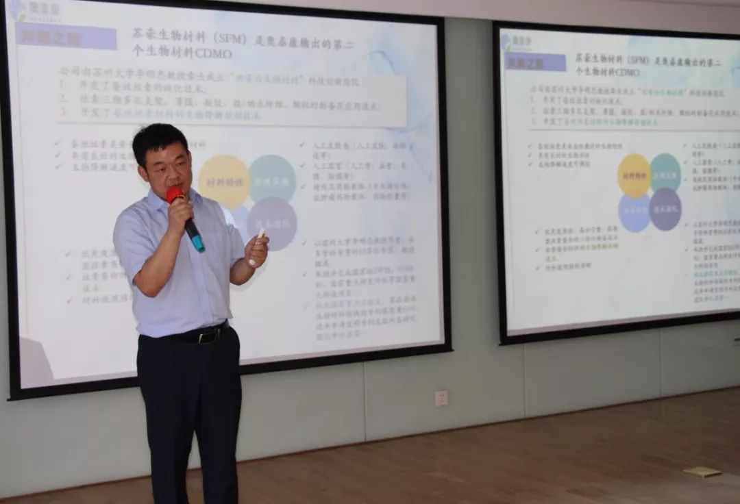培訓(xùn)會(huì)在下午1:30準(zhǔn)時(shí)開始,集團(tuán)CEO饒總對(duì)公司整體發(fā)展做詳細(xì)講解,饒總分別從“企業(yè)發(fā)展歷程”、“管理團(tuán)隊(duì)介紹”、“我們的未來(lái)發(fā)展”三大方面進(jìn)行介紹,培訓(xùn)中,饒總憶苦思甜,深情講述奧泰康發(fā)展初期的鳳凰涅槃,在場(chǎng)員工無(wú)一不為之動(dòng)容,為公司初期艱苦奮斗,堅(jiān)守信念的精神所感動(dòng);之后奧泰康進(jìn)入快速發(fā)展階段,先后獲得多項(xiàng)創(chuàng)新醫(yī)療器械批件,并參與多項(xiàng)國(guó)家重點(diǎn)研究項(xiàng)目,并與多家國(guó)內(nèi)外知名企業(yè)合作,擁有醫(yī)療器械CDMO行業(yè)唯一的已投產(chǎn)GMP車間等等,從最初單項(xiàng)的CRO項(xiàng)目服務(wù)延伸到CRO/CDMO一體化服務(wù),致力于成為醫(yī)藥行業(yè)MA解決方案的領(lǐng)導(dǎo)者;